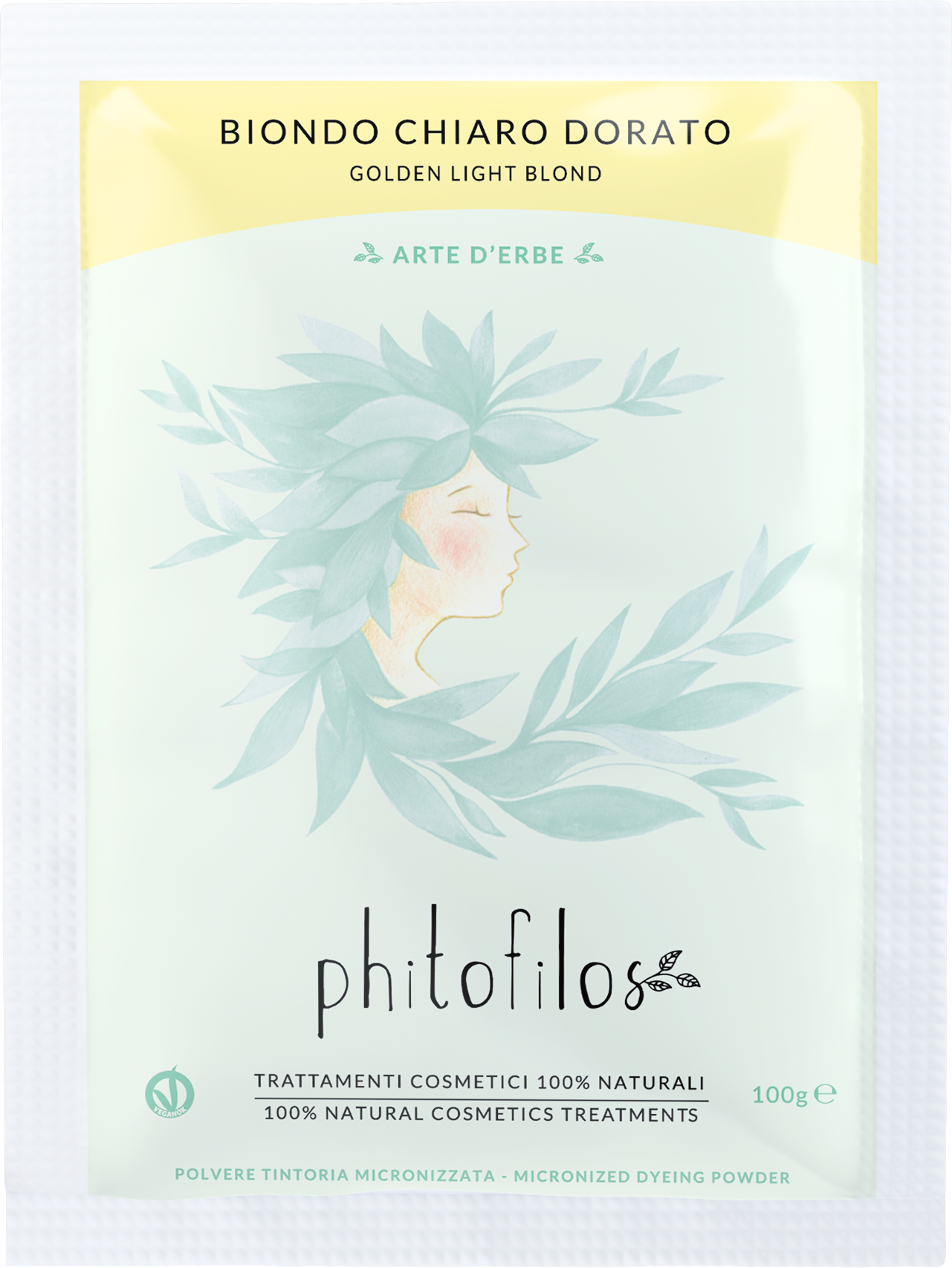 Den lyse gullblonde fargetonen fra Phitofilos er et plantebasert fargepulver med høy fargekraft og god dekning av hvitt hår (med en påføringstid på 45-90 minutter). Det gir utmerkede resultater med delikat lysende gulltoner på blondt hår. Lette resultater med fremragende lyseffekter kan sees på lysebrunt utgangspunkt (45-120 minutter).