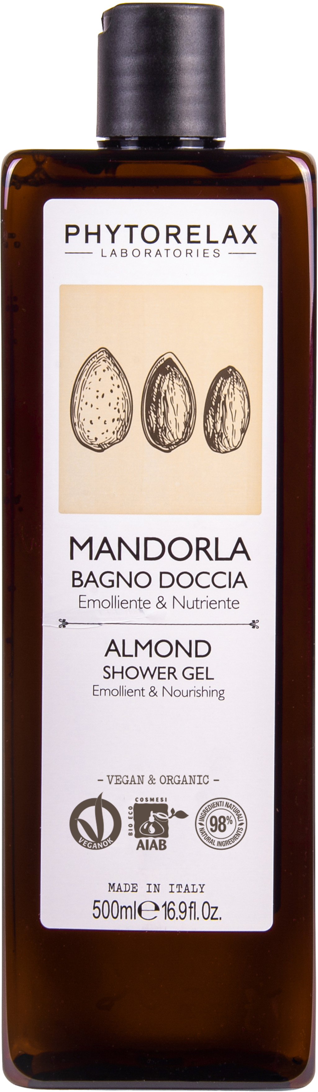 Mandel dusjgelé fra PHYTORELAX LABORATORIES inneholder næringsrik, økologisk søt mandelolje som gir intensiv pleie til huden, noe som gjør dusjgelen ideell for tørr hud!