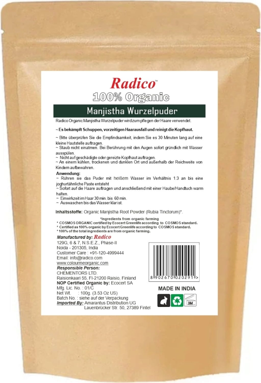 Radico Bio-Manjistha Pulver, 100 g