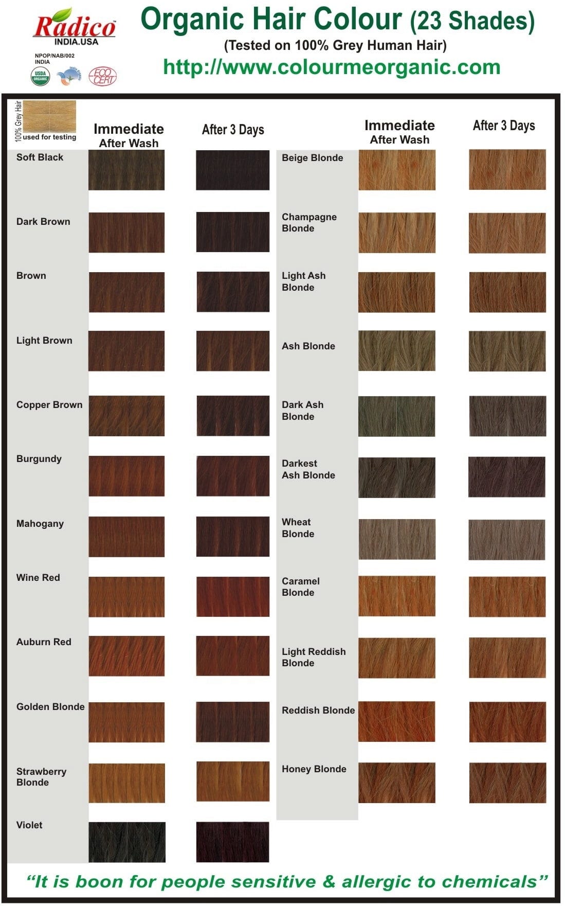 - Den økologiske hårfargen er en perfekt blanding av ulike urter for å farge håret effektivt og dekke grå hår. For sterke, glansfulle og sunne hår i fargen du ønsker, helt uten kjemikalier.