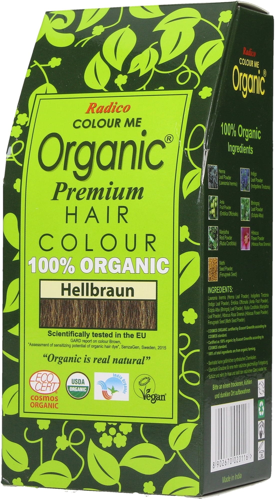 • Den økologiske hårfargen er en perfekt blanding av ulike urter for å effektivt farge håret og dekke grå hår. For sterk, glansfullt og sunt hår i den fargen du ønsker, helt uten kjemi.