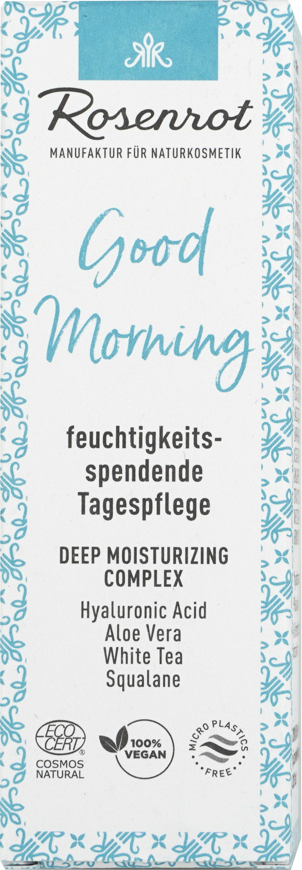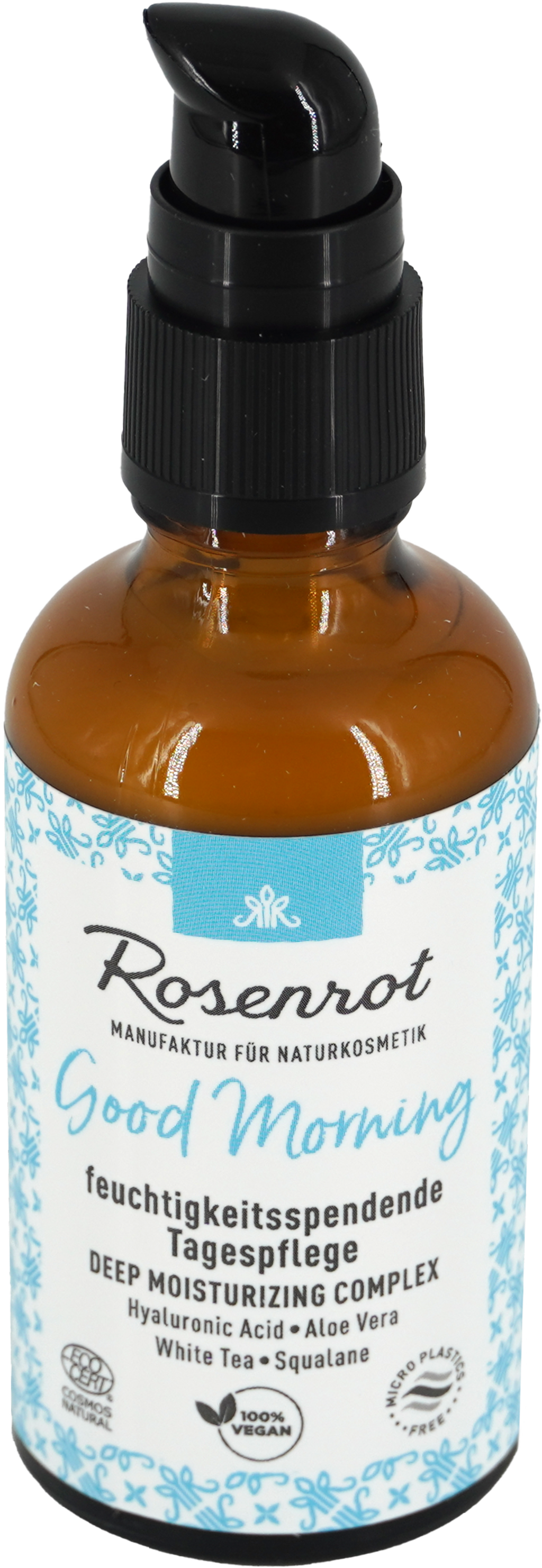 Dagkremen fra Rosenrot inneholder en perfekt tilpasset blanding av verdifulle pleieoljer, vitaminer og en fuktighetsbooster. I kombinasjon gir hyaluronsyre, økologisk hampfrøolje, Aloe Vera og Arganolje intens fuktighet. Med den naturlige formelen blir huden din optimalt oppfrisket, og resultatet er en strålende hud.