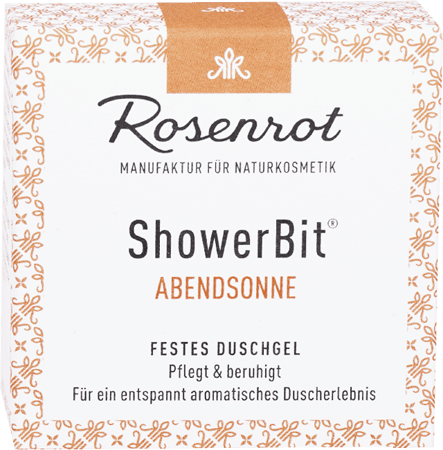 Den faste dusjgelen Solnedgang fra Rosenrot renser huden skånsomt med porselensleire og gir intensiv pleie. Formuleringen med vitaminrik økologisk sheasmør samt økologisk jojobaolje pleier skånsomt. Det som gjenstår er fløyelsmyk hud og en aromatisk duft av appelsin med en fin vaniljenote.