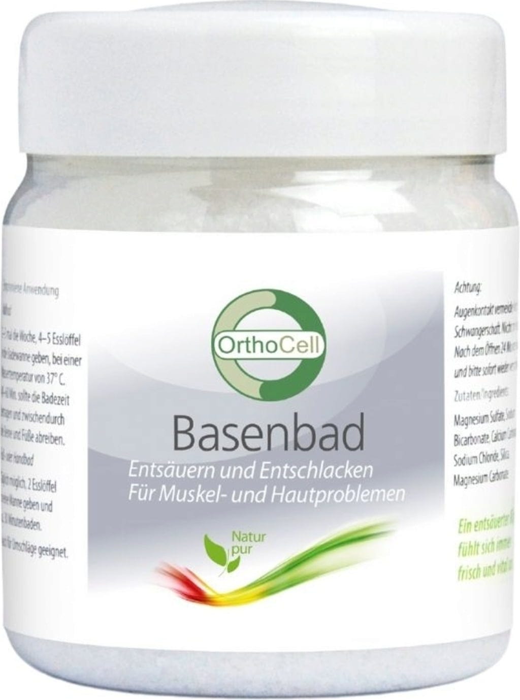 OrthoCell's basisk bad egner seg utmerket til basekurer og spesielt for full-, fotbad og basiske omslag. Når det oppløses i vannet, har badet en pH-verdi på ca. 8,5. Det er også perfekt som supplerende pleie ved akne, cellulitt, sprengte blodkar, atopisk eksem, psoriasis, kløe, vorter og hard hud.