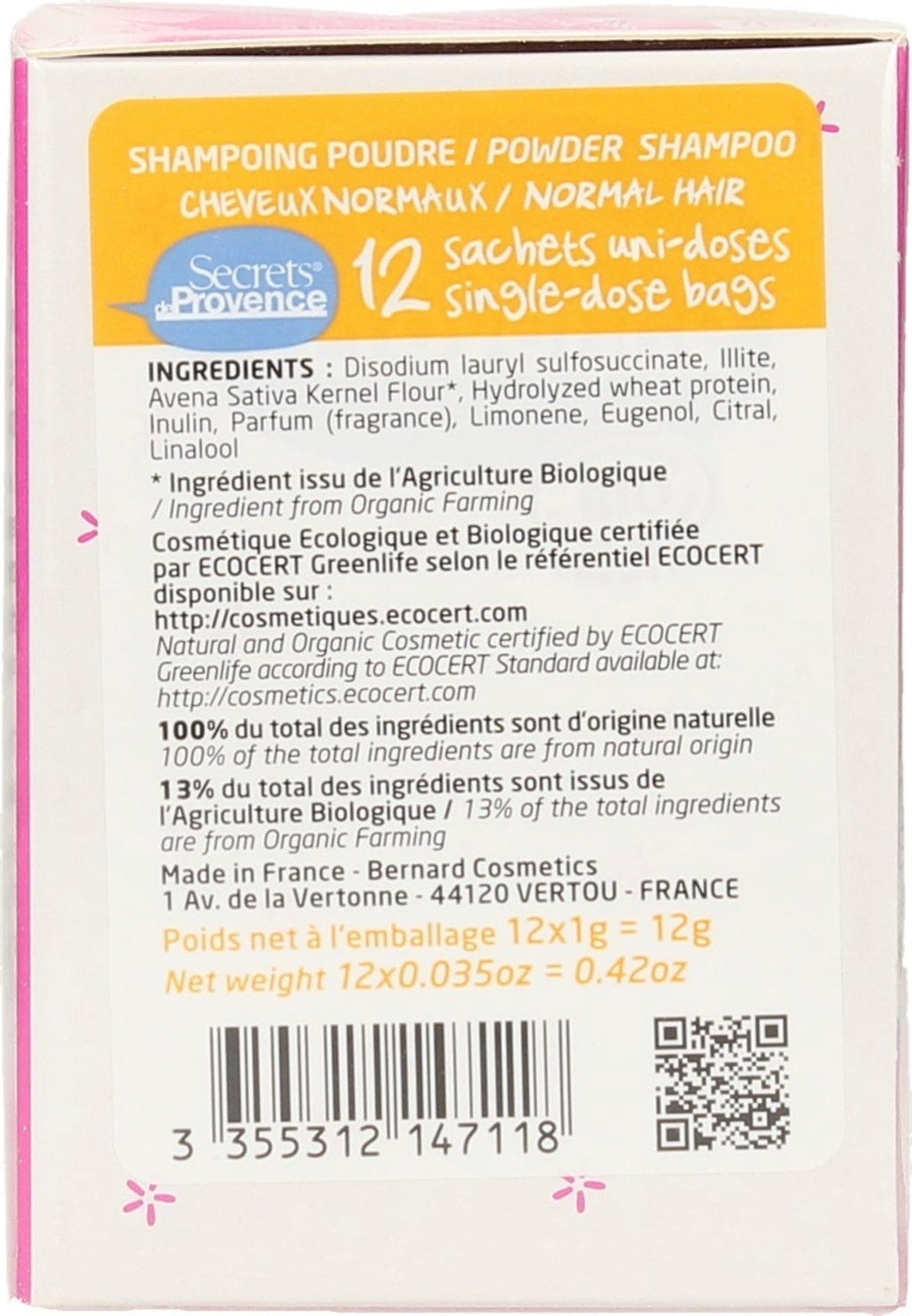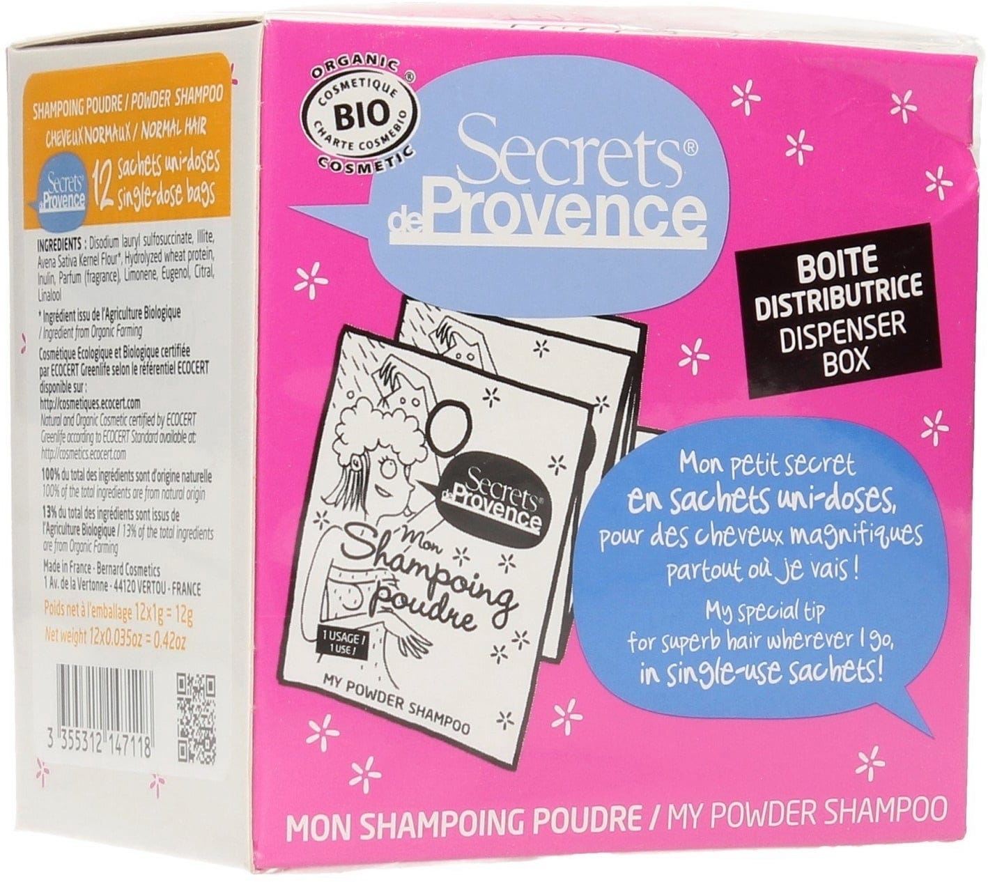 Dette innovative produktet fra Secrets de Provence er ideelt for miljøvennlig hårvask. En pakke inneholder 12 enkeltsachetter, hver med 1 g pulver, som vanligvis er nok til en hårvask.