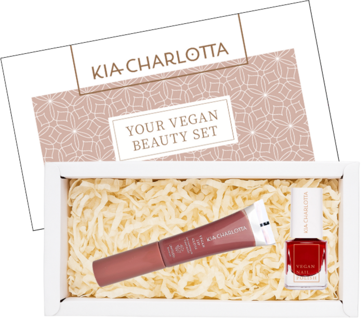 Det fantastiske X-Mas Settet fra KIA-CHARLOTTA inkluderer en elegant duo for lepper og negler, perfekt koordinert for å gi deg et wow-øyeblikk i høytiden. Den veganske lipglossen Glorious gir deg en vakkert glitrende kyssemunn, mens neglelakken får neglene dine til å stråle i en dyp rød farge.