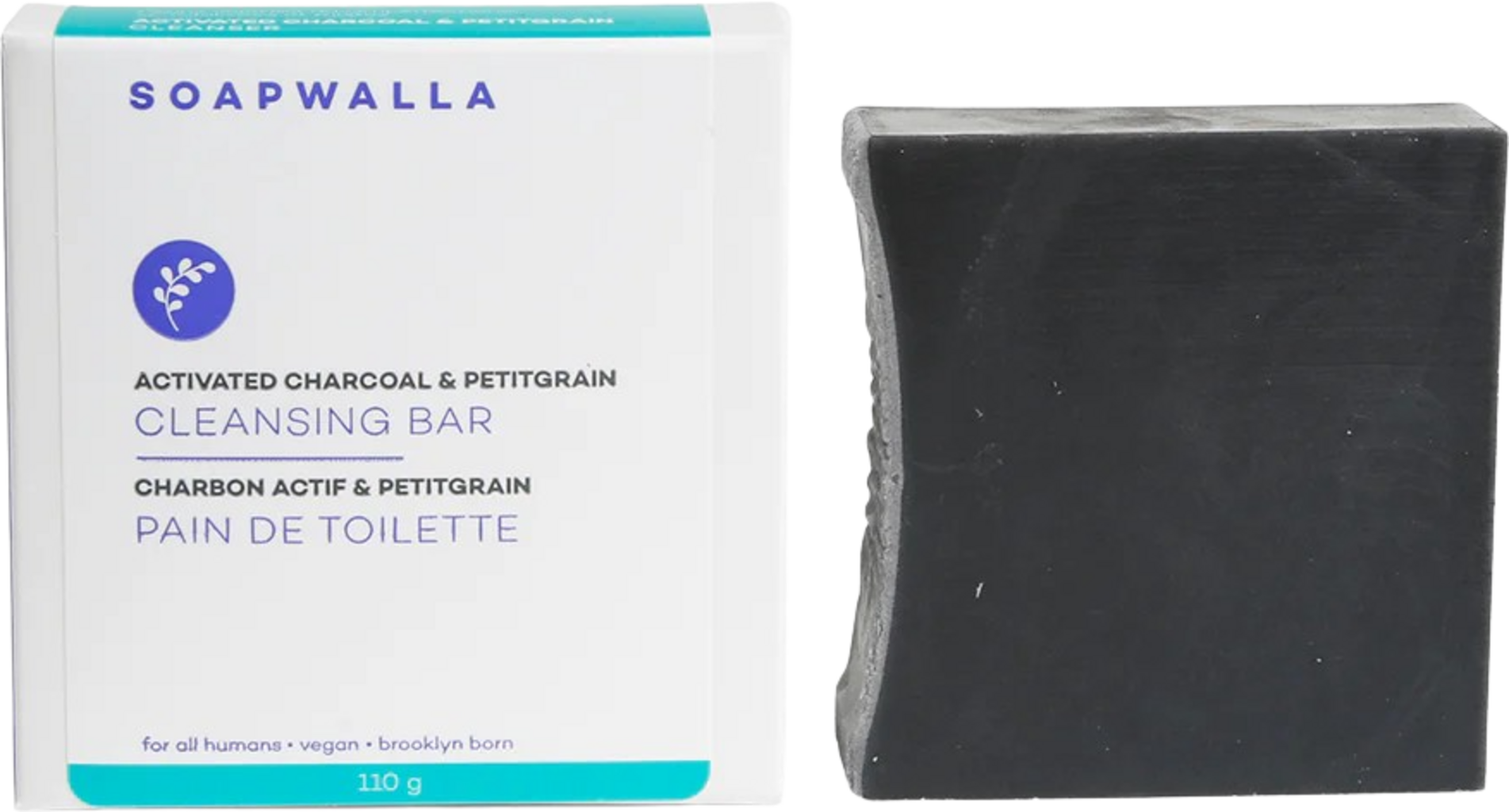 Soapwalla Såpestykke med aktivt kull og petitgrain, 110 g