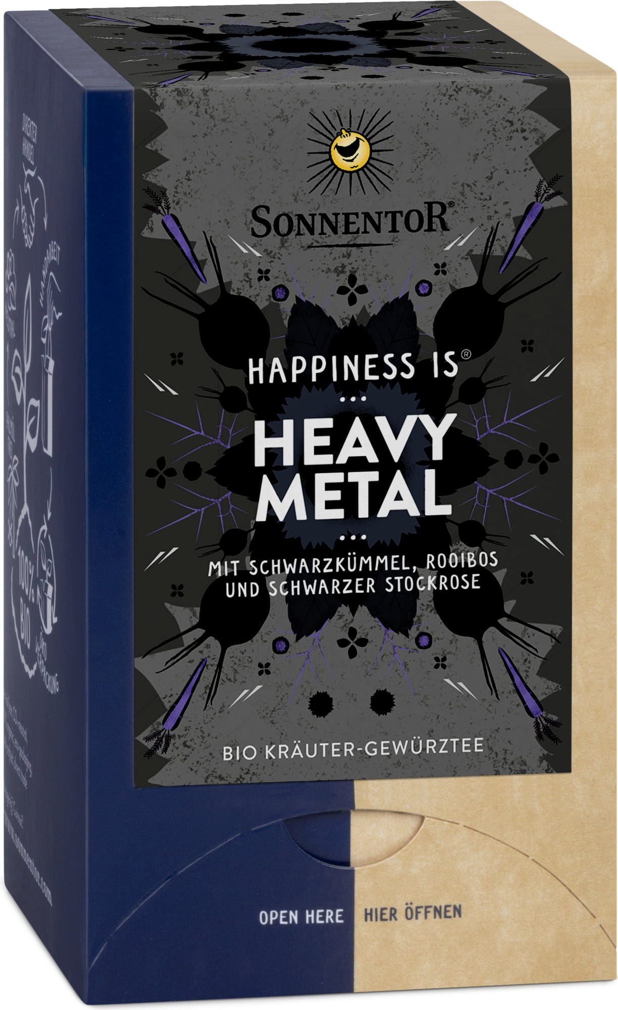 En te som et rockekonsert - intens, skarp og med et hint av spenning. Blandingen med svartfrø, rooibos, svart kattmynt og utvalgte krydder tilbyr en frisk, krydret-skarp, aromatisk og eterisk smak. Dermed er Heavy Metal også ideell til stek, ost eller kraftige pålegg. La smaksløkene danse!