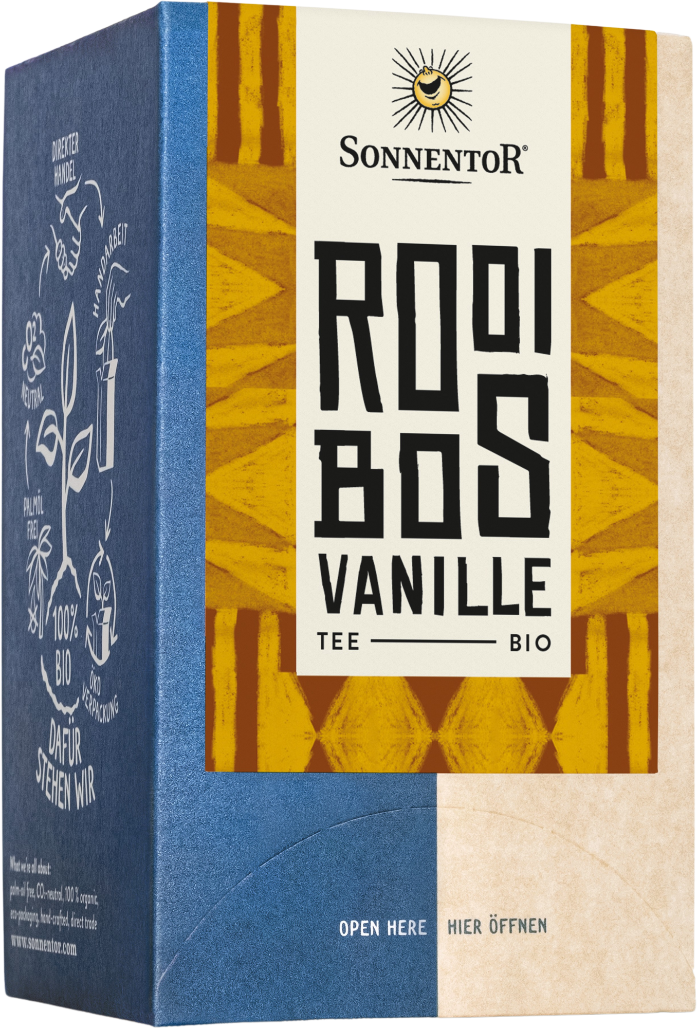 Den perfekte kombinasjonen av kontraster: Fyldig, lett jordaktig rooiboste, kombinert med søt vanilje. Forfinet med en skvett melk eller en skje honning, inviterer den til drømmer og nytelse. Det er en vidunderlig følgesvenn til dessert eller en søt kontrast til krydrede retter.