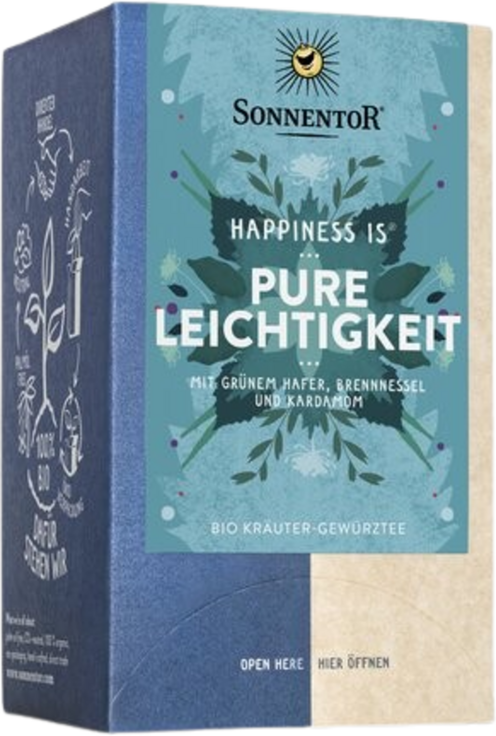 Den herlige økologiske urtekrydder-teblandingen lar deg oppleve ren letthet og støtter deg i å komme i harmoni med deg selv. Gjennom en komposisjon av grønn havre, brennesle, kardemomme, kanel og mange andre ingredienser får teen sin søtlige, krydrete og urteaktige smak. Dermed passer den perfekt til lette salater eller grønnsakssupper.