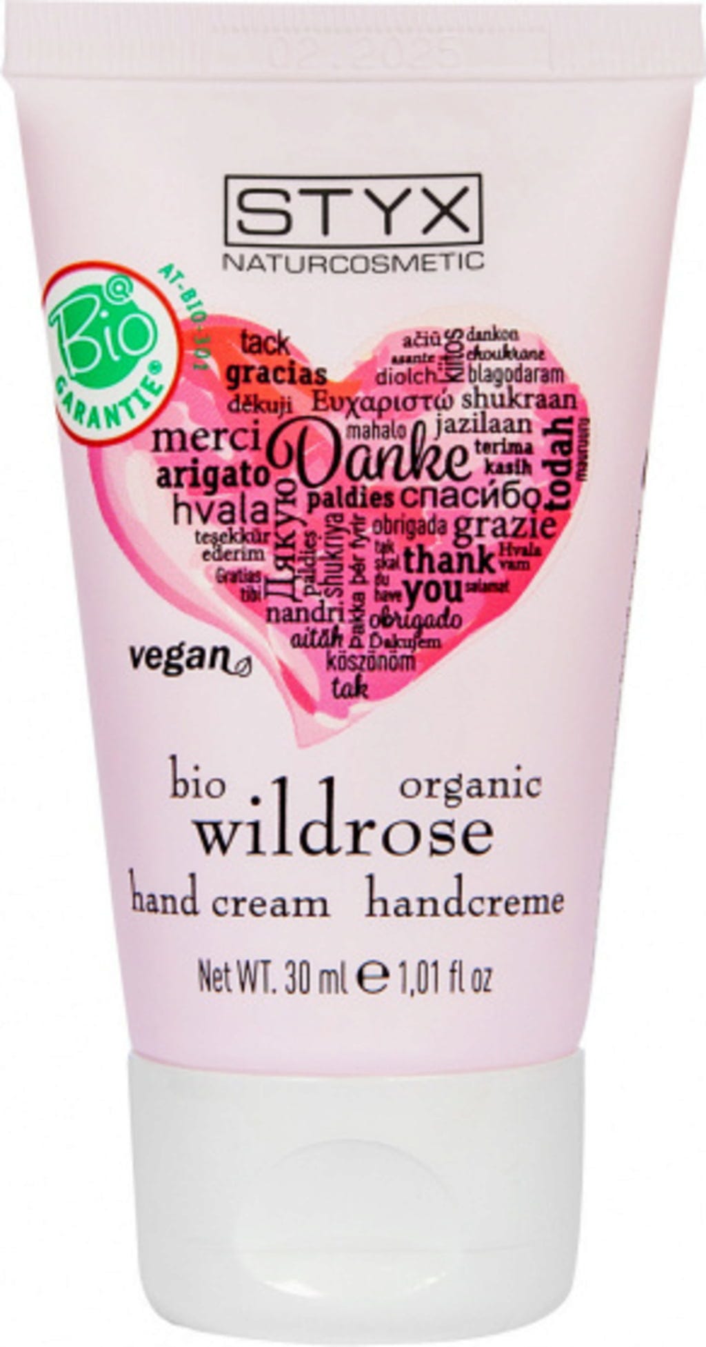 Villrose Håndkrem fra STYX tilbyr verdifull pleie takket være førsteklasses ingredienser som økologisk villroseolje, sheasmør og jojobaolje. Denne kombinasjonen tilfører fuktighet til huden og gir også slitne hender en ny opplevelse av velvære dag etter dag, mens den deilige roseduften skaper en behagelig atmosfære.