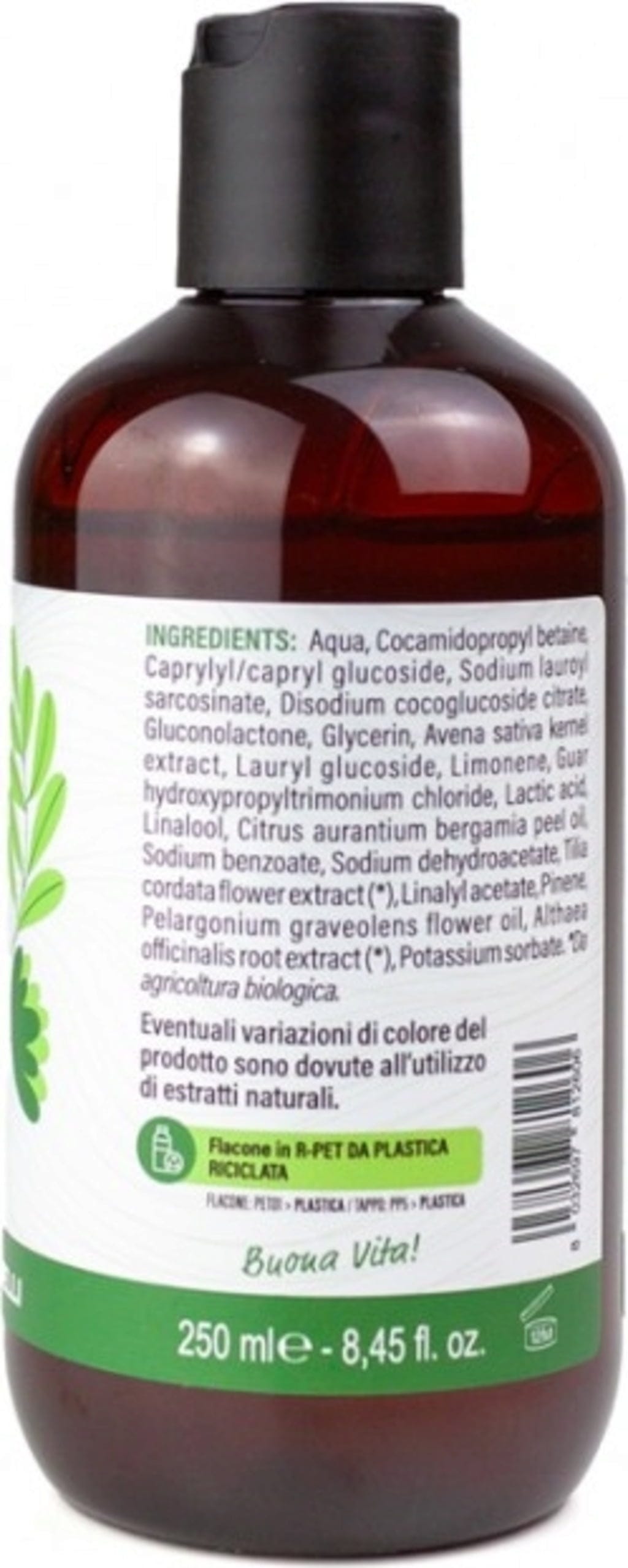 Aqua, Cocamidopropyl Betaine, Caprylyl/Capryl Glucoside, Sodium Lauroyl Sarcosinate, Disodium Cocoglucoside Citrate, Gluconolactone, Glycerin, Avena Sativa (Oat) Extract, Lauryl Glucoside, Limonene, Guar Hydroxypropyltrimonium Chloride, Lactic Acid, Linalool, Citrus Bergamia Peel Oil, Sodium Benzoate, Sodium Dehydroacetate, Tilia Cordata (Linde) Flower Extract[1], Linalyl Acetate, Pinene, Pelargonium Graveolons (Geranium) Flower Oil, Althea Officinalis Root Extract[1], Potassium Sorbate