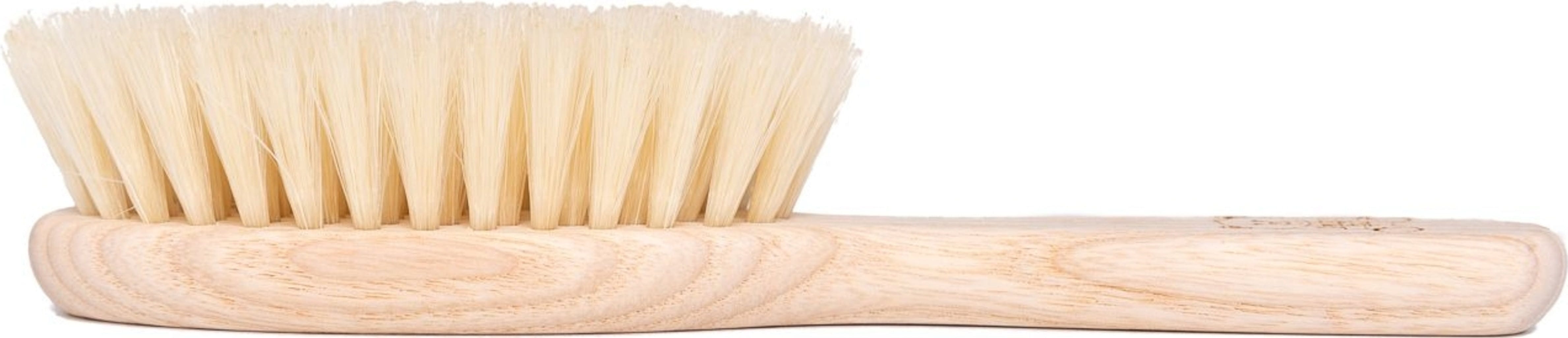 Med denne ekstra myke børsten fra tek kan du forsiktig fjerne melkeskorpe fra den sensitive hodebunnen til babyen din. Den er laget av ubehandlet asketre og har myke, veganske børster.