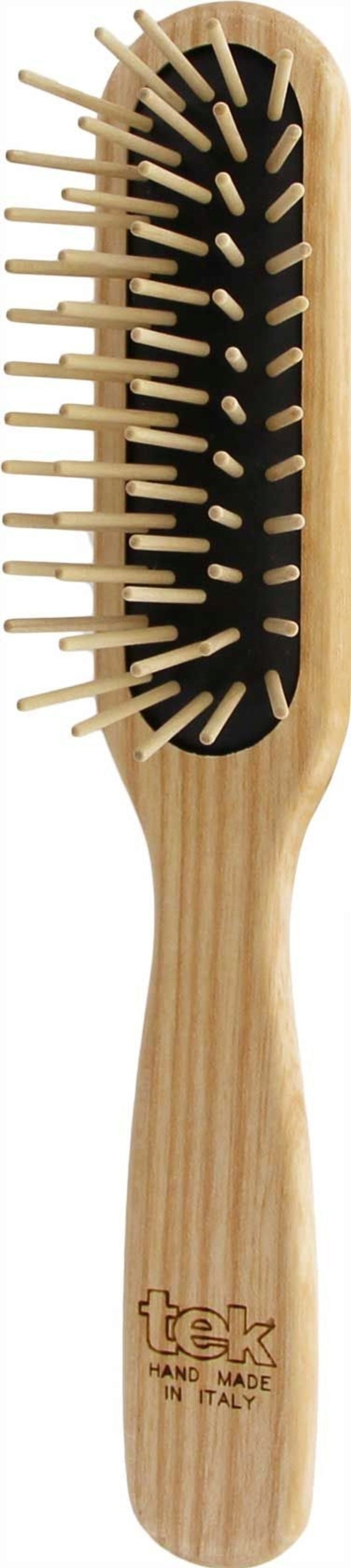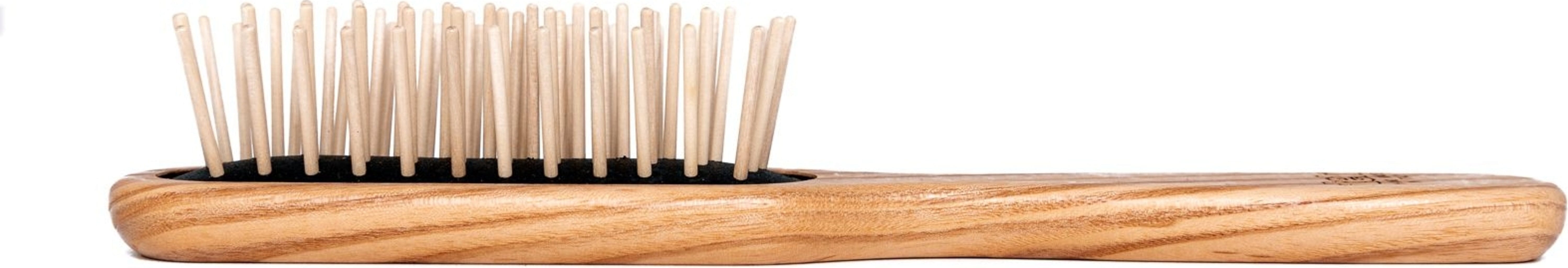 Denne børsten er, takket være sin form og de lange pinnene av agnbøk, ideell for middels, kort hår og for menn. Den er laget av vokset og oljet, FSC®-sertifisert ask. Pinnene er antistatiske og er innlemmet i en luftpute av svart naturgummi.