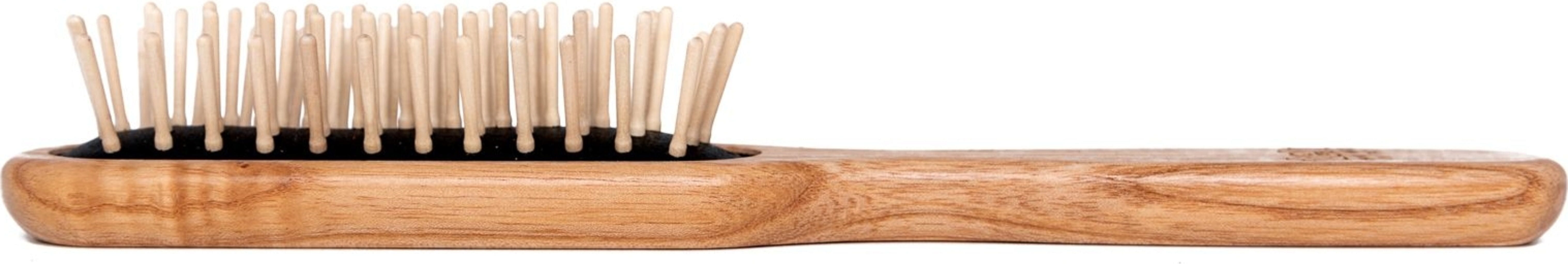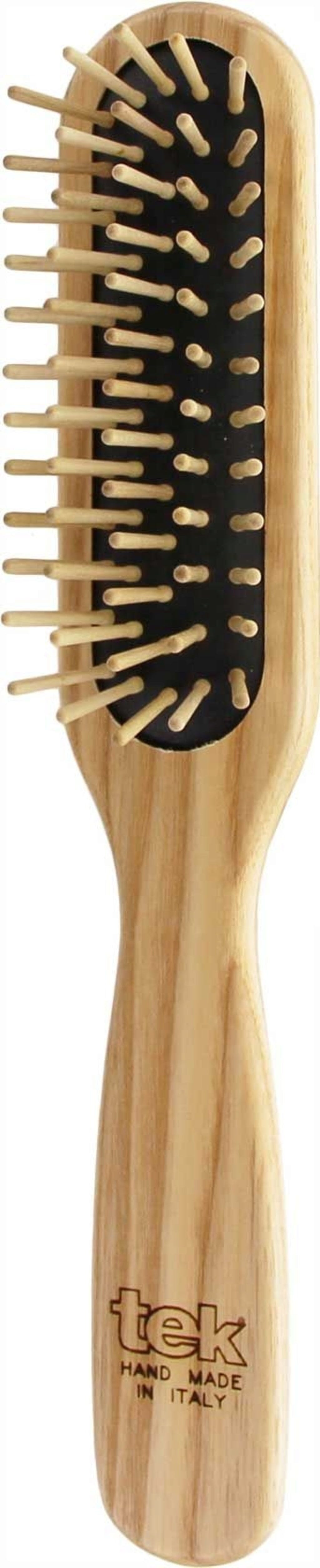 Den antistatiske hårbørsten fra tek er egnet for kort, veldig kort hår hos både menn og kvinner. Den fås i den klassiske versjonen eller i "Caleidolegno" (fargede lag av FSC®-sertifisert tre, satt sammen igjen med ultralyd). Børsten har et håndtak behandlet med karnaubavoks og linolje, og har korte pinner av agnbøk, som er innfelt i en luftpute av naturgummi.