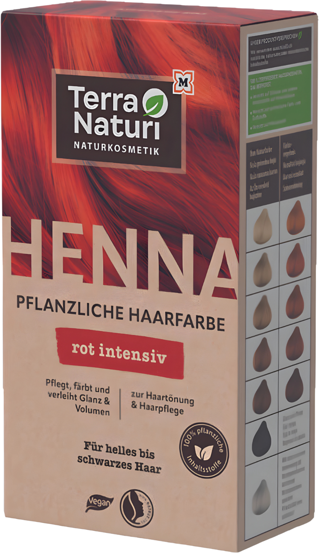 Henna Rød Intensiv er egnet for farging og pleie av alle hårtyper. Brukes for å farge og pleie fra lyst blondt til svart hår, gjør selv belastet og sprøtt hår mykt igjen. Det kan blandes med andre plantebaserte hårfarger fra Terra Naturi for å få individuelle nyanser. Avhengig av virketid og mengde pulver som brukes, vil fargeresultatet variere.