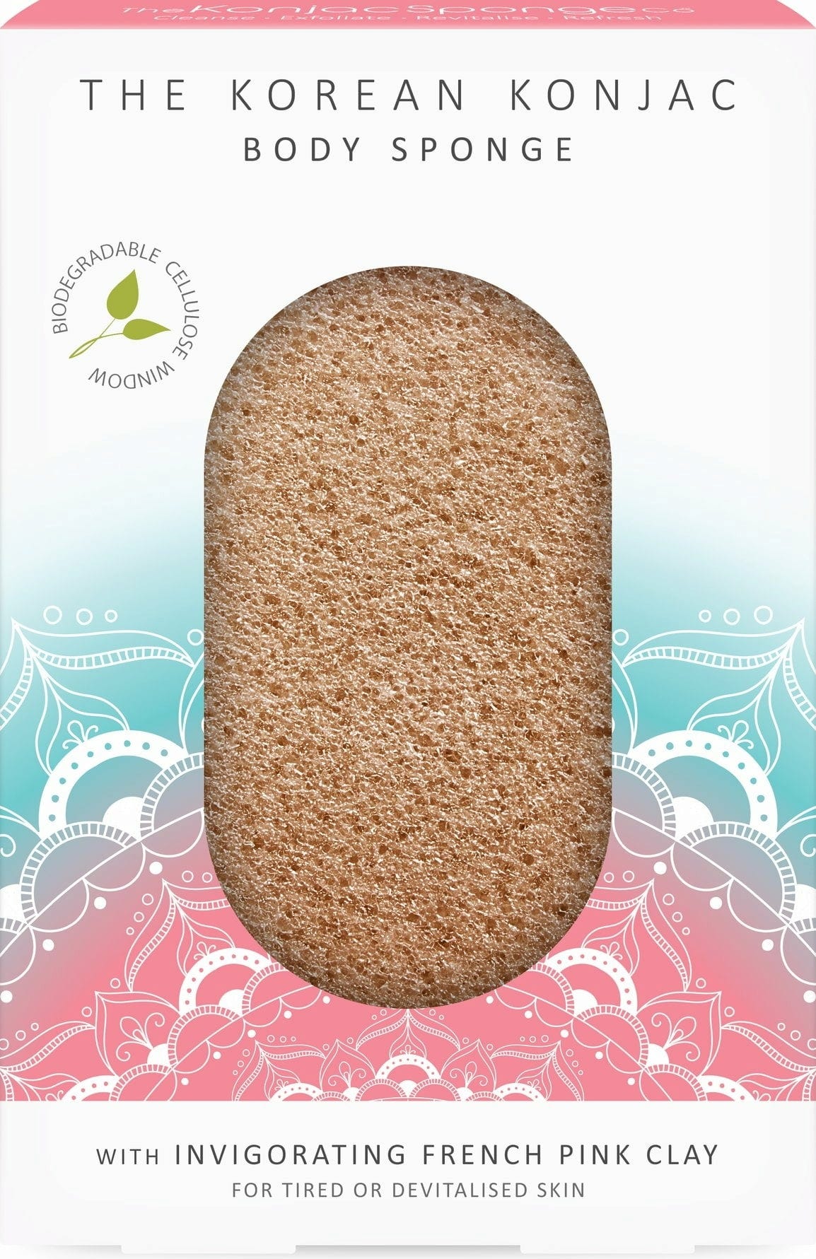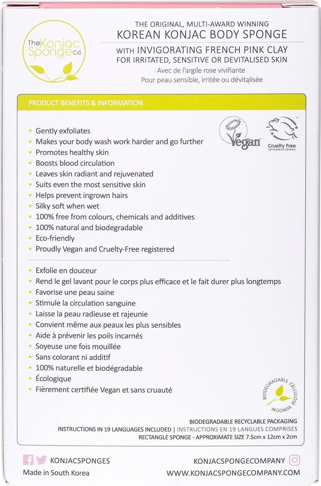 Denne Konjac-svampen er perfekt for sensitiv, tørr hudtype eller for alle som har hud utsatt for harde værforhold eller for mye sol. Den er beriket med rosa leire, som er en blanding av Kaolin og rød leire. Dette er den mildeste av alle franske leirer, naturlig rik på mineraler, jernoksid og silika. I kombinasjon med de myke Konjac-fibrene skrubber den huden forsiktig og gjør den myk, mens belastede eller irriterte hudområder blir frisket opp.