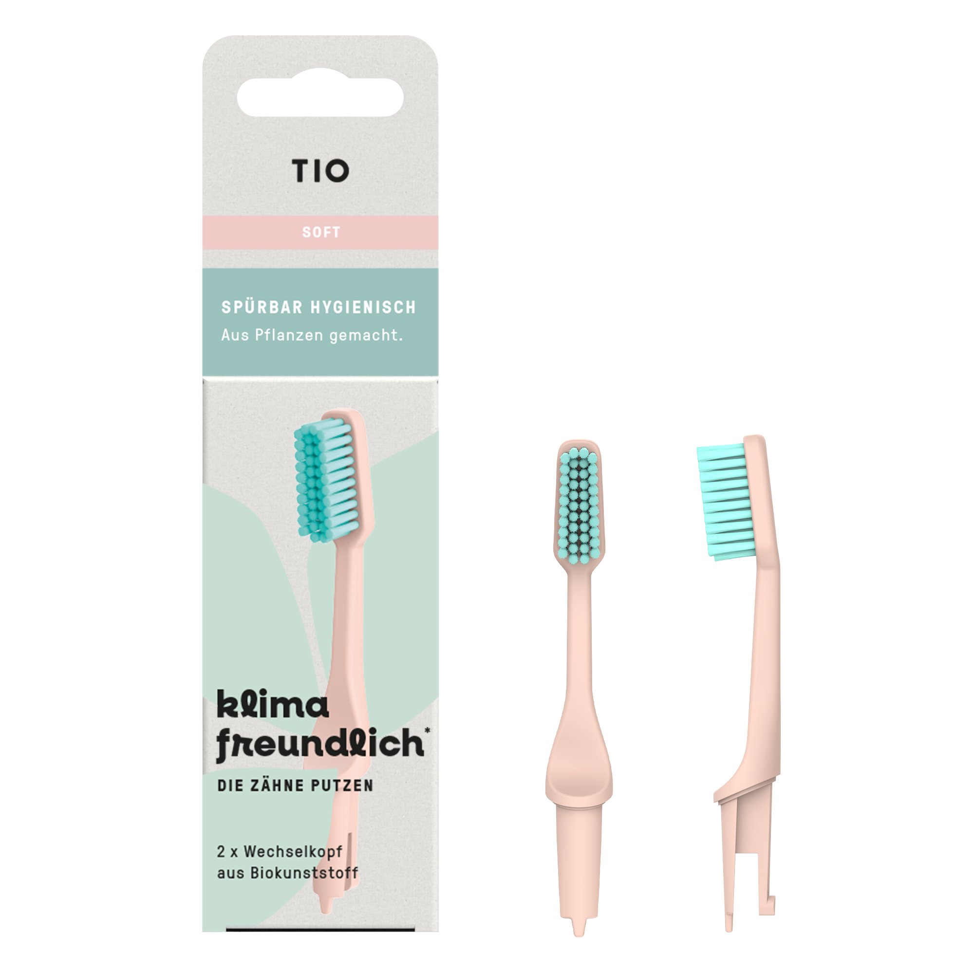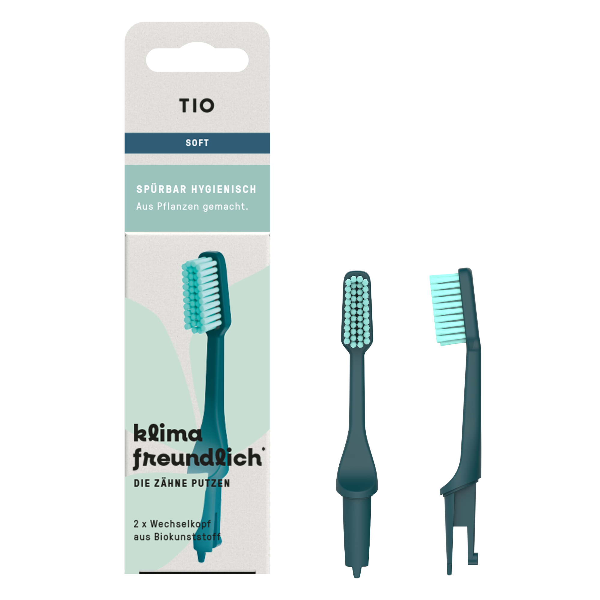 Med de miljøvennlige hodene fra TIO blir bærekraftig tannpuss enkelt. De lett skrå reservehodene har myke børster laget av Nylon 10.10, som er hentet fra ricinusolje og er skånsomme mot tannkjøttet. Etter bruk kan børstehodet kastes i restavfallet, og dermed sparer du mye plastavfall.