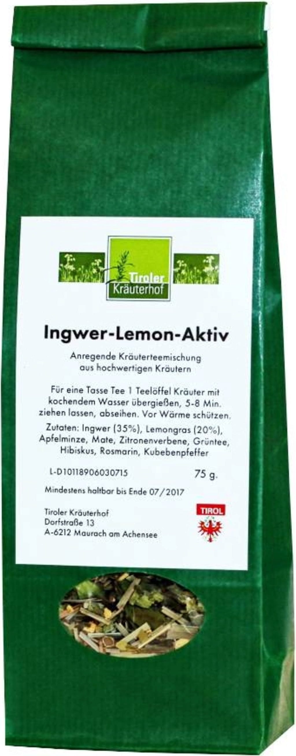 Tiroler Kräuterhof Ingefær Sitron Aktiv Te, 75 g