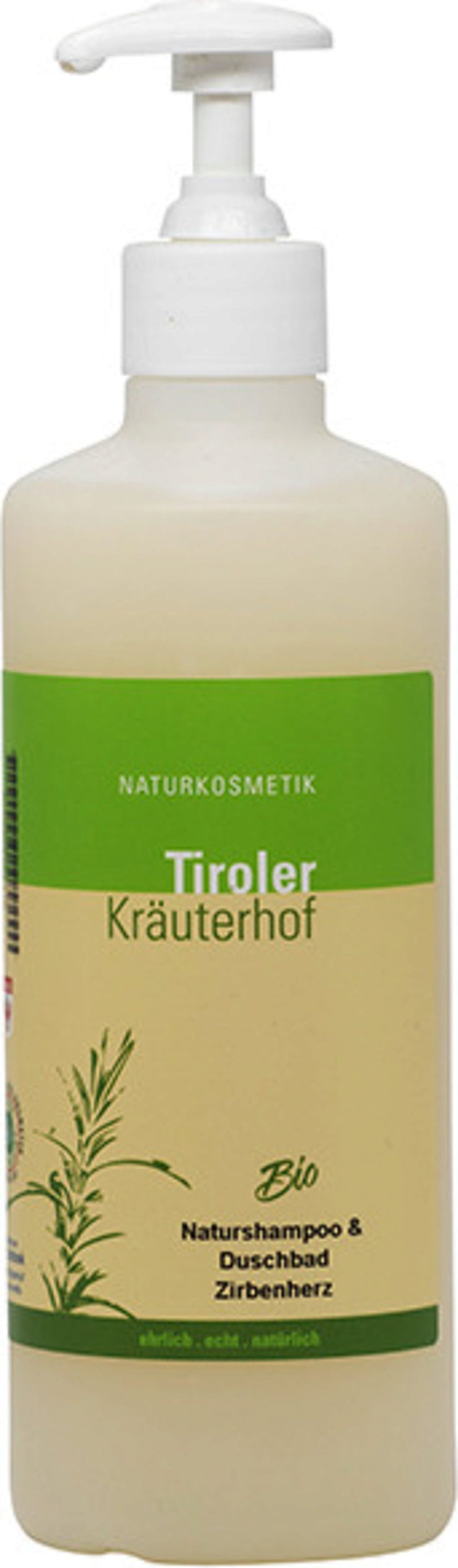 Tiroler Kräuterhof Naturlig sjampo og dusjbad med Zirbenherz organisk, 500 ml