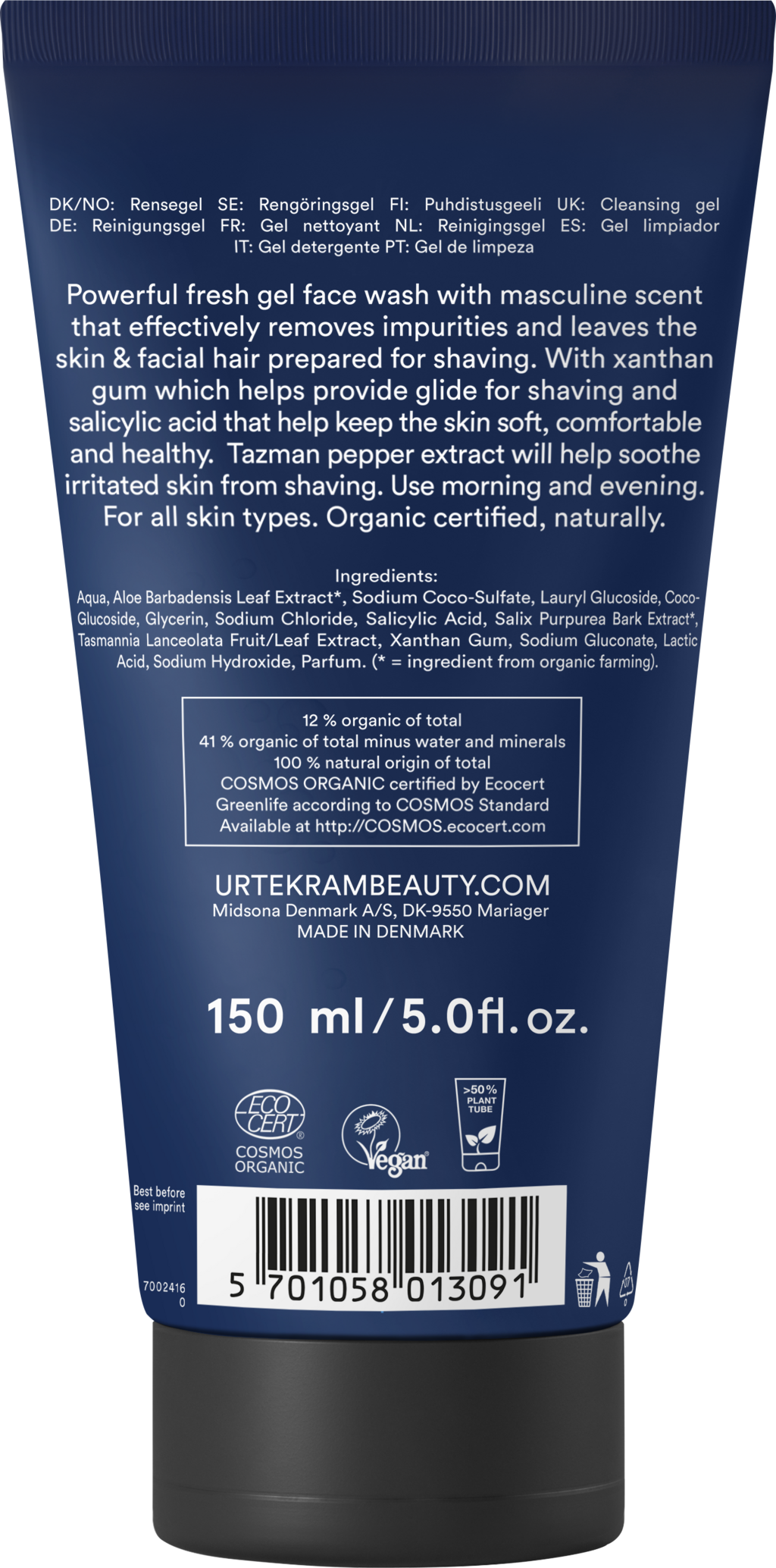 URTEKRAM Men Face Wash, 150 ml