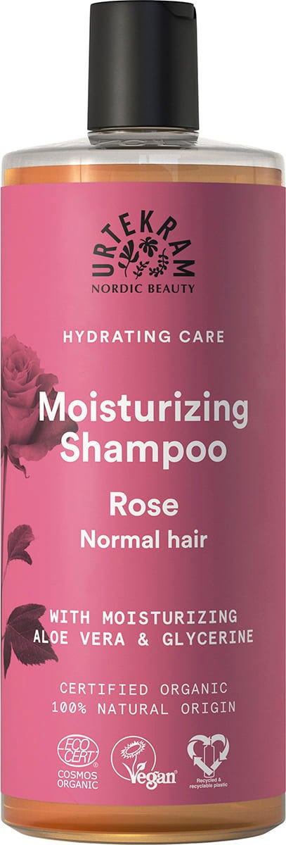 Denne sjampoen fra URTEKRAM er egnet for rensing av normalt hår og dufter uimotståelig av roser. Den gir fuktighet og pleier håret på en lett måte med aloe vera og glyserin.