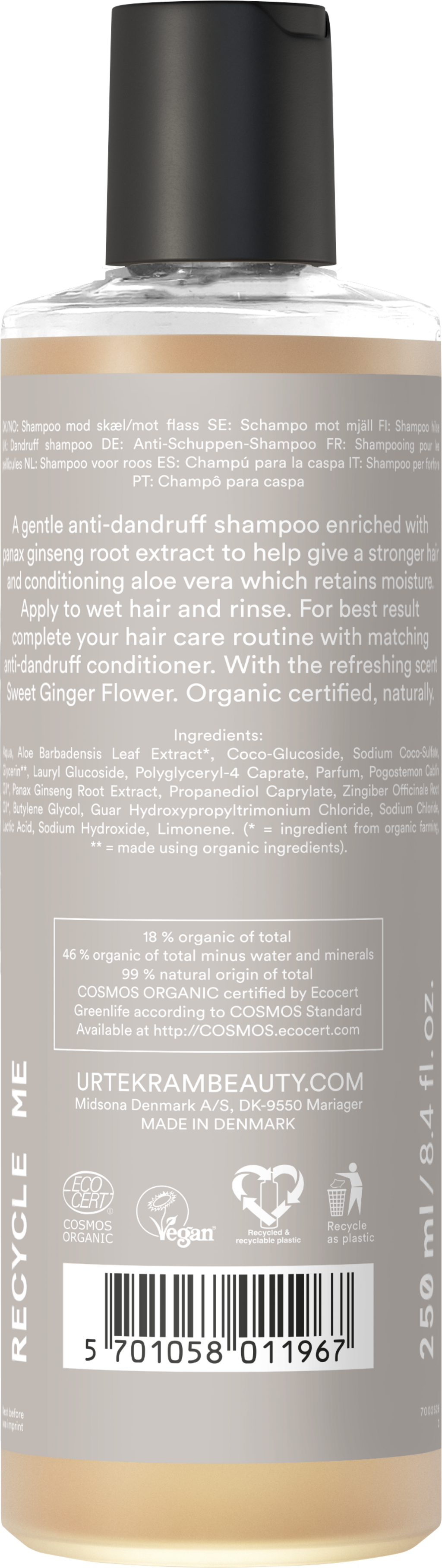 URTEKRAM Sweet Ginger Flower Anti-Dandruff Shampoo, 250 ml