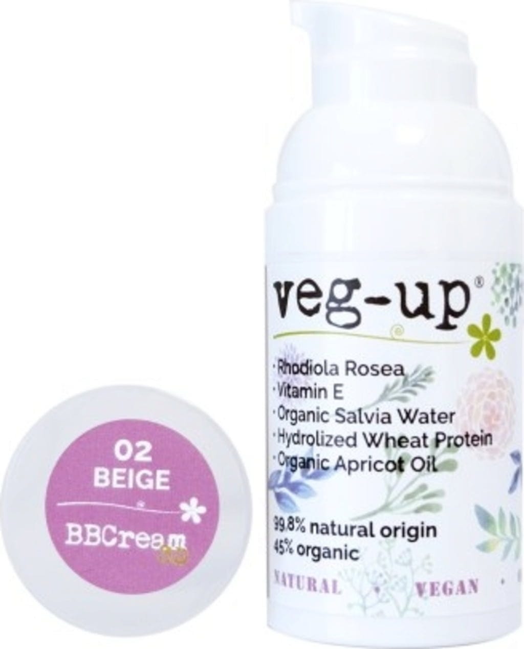 Den veganske BB-kremen fra veg-up har en lett, kremet tekstur, føles behagelig på huden og er enkel å påføre. Den høye andelen av vitamin E beskytter huden mot miljøbelastninger og bidrar til en anti-aldringseffekt. Kremen inneholder også utvalgte aktive ingredienser som har glattere og pleiende egenskaper: