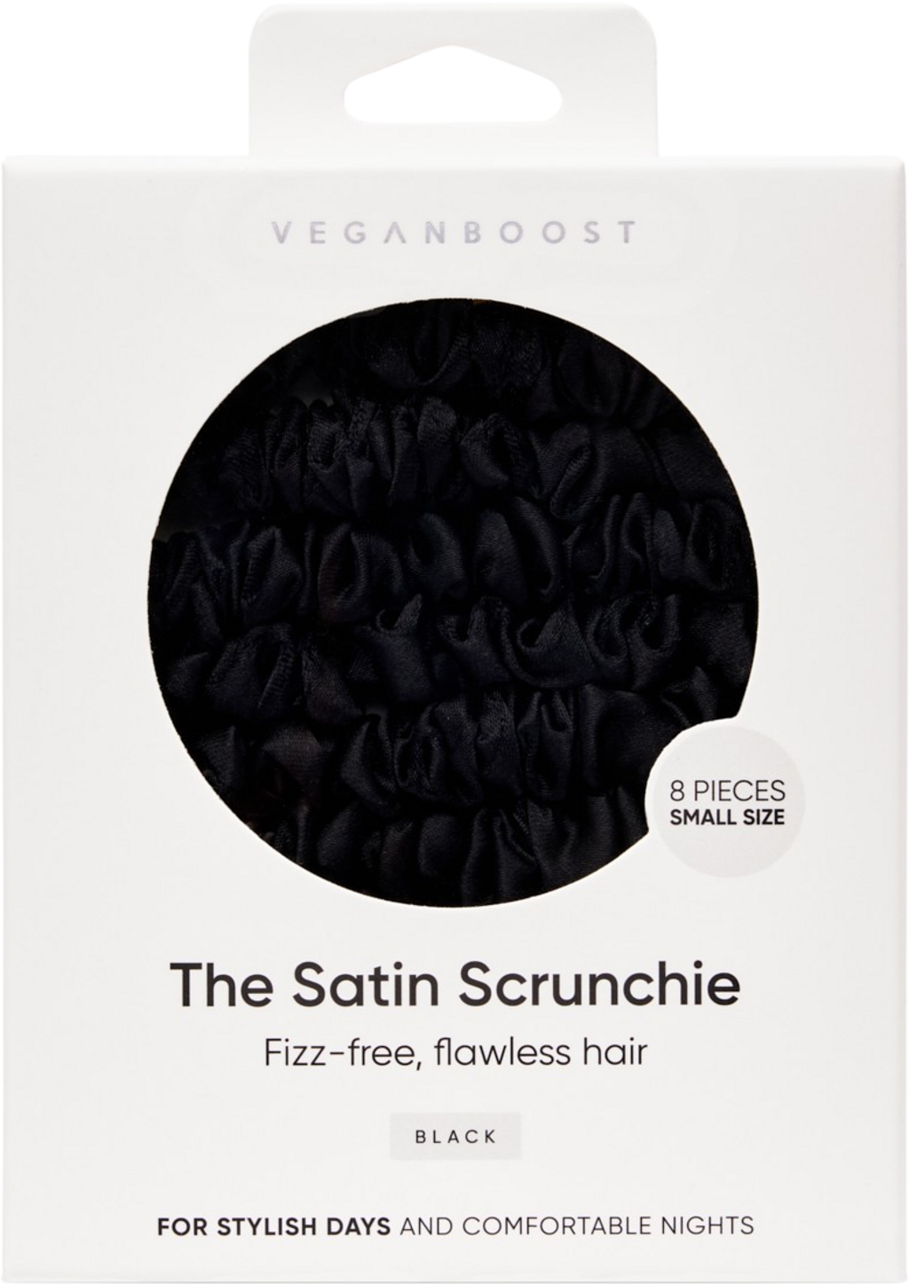 Veganboost Satin Scrunchie, liten størrelse., Svart (8 Stk)