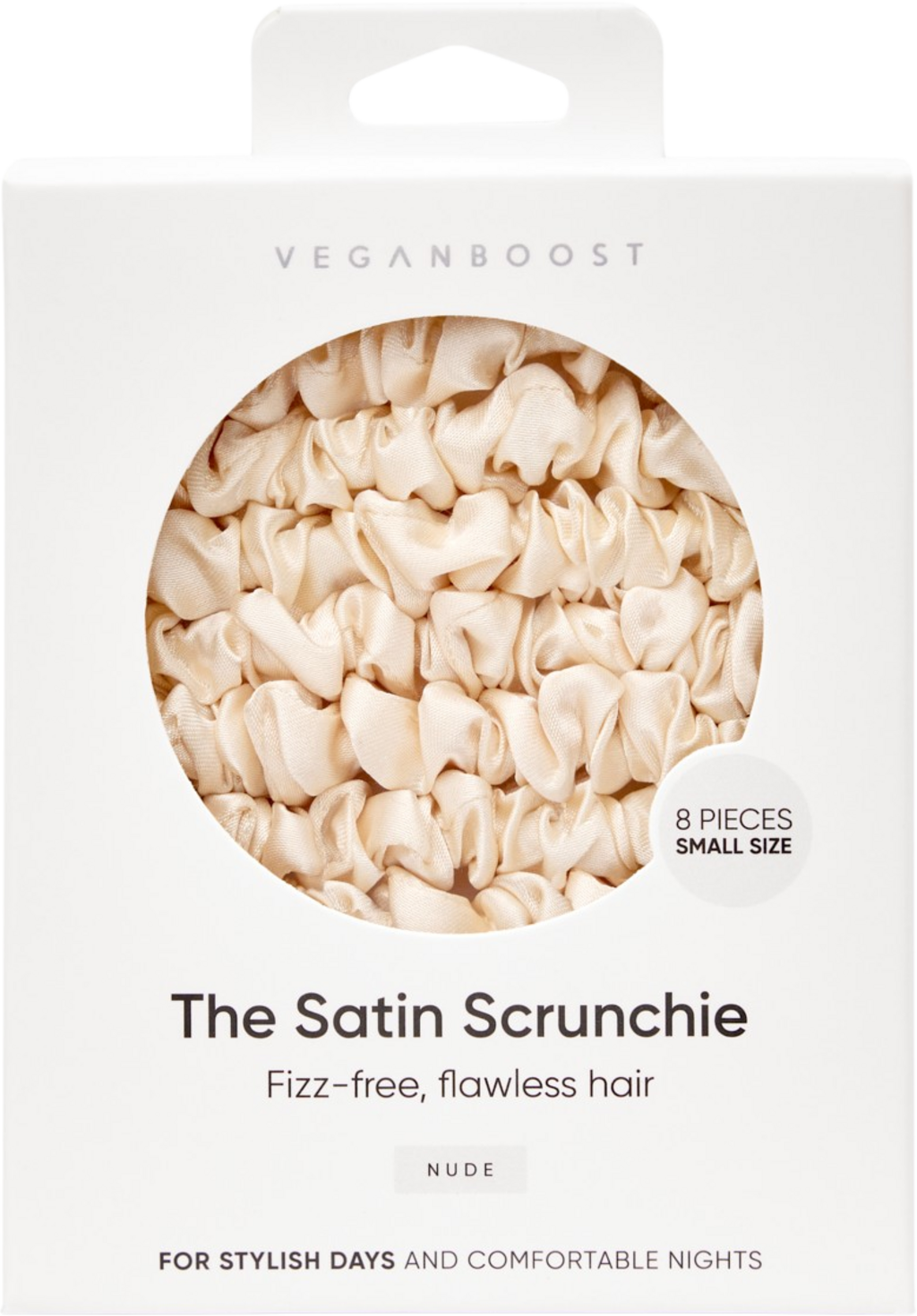 Veganboost Satin Scrunchie, liten størrelse., Nude (8 Stk)