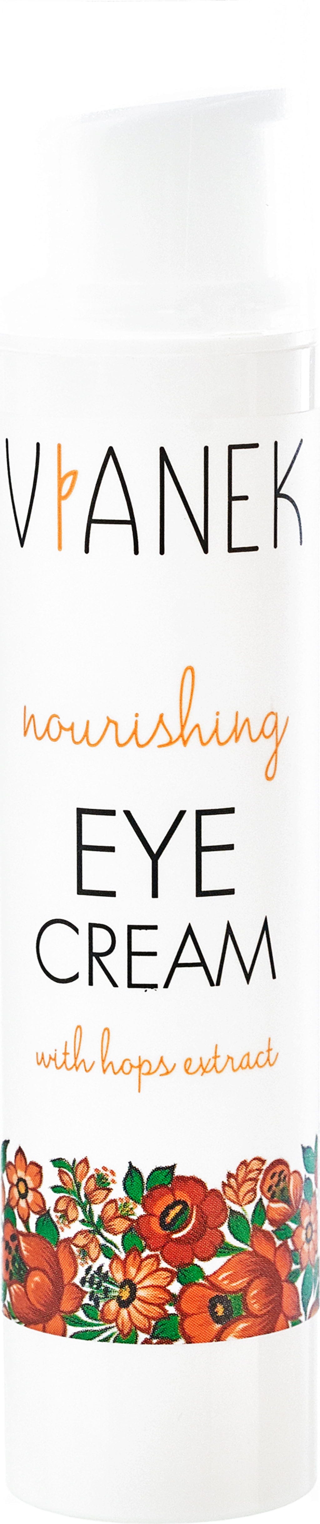 Særlig de sensitive områdene rundt øynene trenger riktig pleie. Med den milde øyekremen fra VIANEK kan disse delikate partiene få optimal omsorg. Den ekstra milde formuleringen med vitaminrike oljer fra tindved, aprikoskjerner og soyabønner styrker den sarte huden samtidig som den tilfører antioksidante egenskaper. Fin humleekstrakt bidrar til å forebygge tidlige tegn på hudaldring. Den superlette konsistensen absorberes raskt og kan brukes under sminke.
