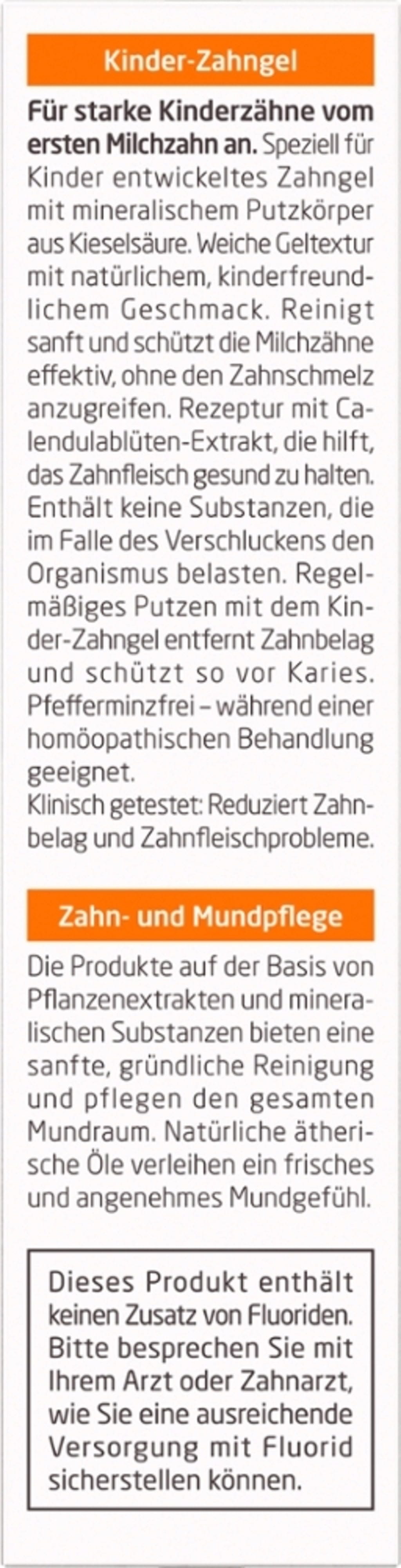 Barn har en annen oppfatning enn voksne. Derfor er barne-tanngeleen tilpasset i konsistens, farge og smak for barns oppfattelse for å gjøre den daglige tannpleien enklere. Gleen er svært mild i sin sammensetning og inneholder ingen belastende stoffer, skulle den utilsiktet svelges. Ved regelmessig bruk fjerner den tannbelegg grundig og renser på en naturlig og skånsom måte.