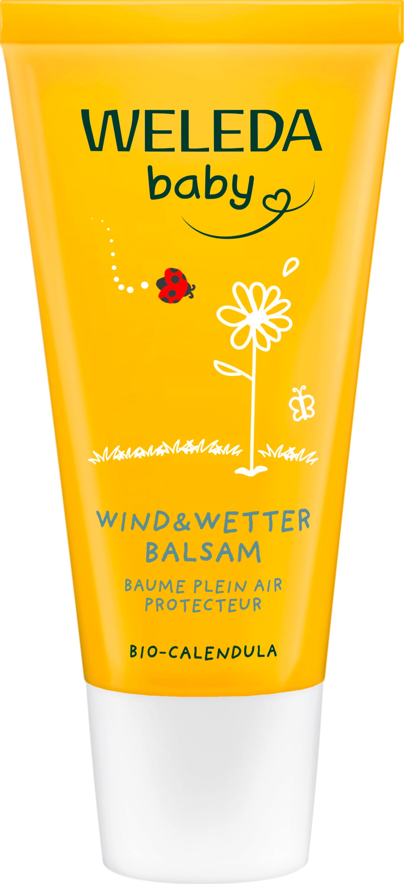 Sensitiv barne- og babyhud trenger spesiell beskyttelse, særlig når det skal ut i frisk luft i regn, vind eller snø. Den intensivt beskyttende og svært rike Vind & Wetter-balsamen fra Weleda gir optimal beskyttelse for sensitiv ansiktshud og små hender. Hudlignende lanolin (ullvoks) og ren bivoks danner en pustende beskyttelsesfilm, mens verdifull mandelolje sikrer følbar smidighet - selv ved tørr, stresset hud. Vind & Wetter-balsamen inneholder ikke vann og er svært drøy i bruk. Den er også godt egnet for å beskytte sensitiv voksenhud.