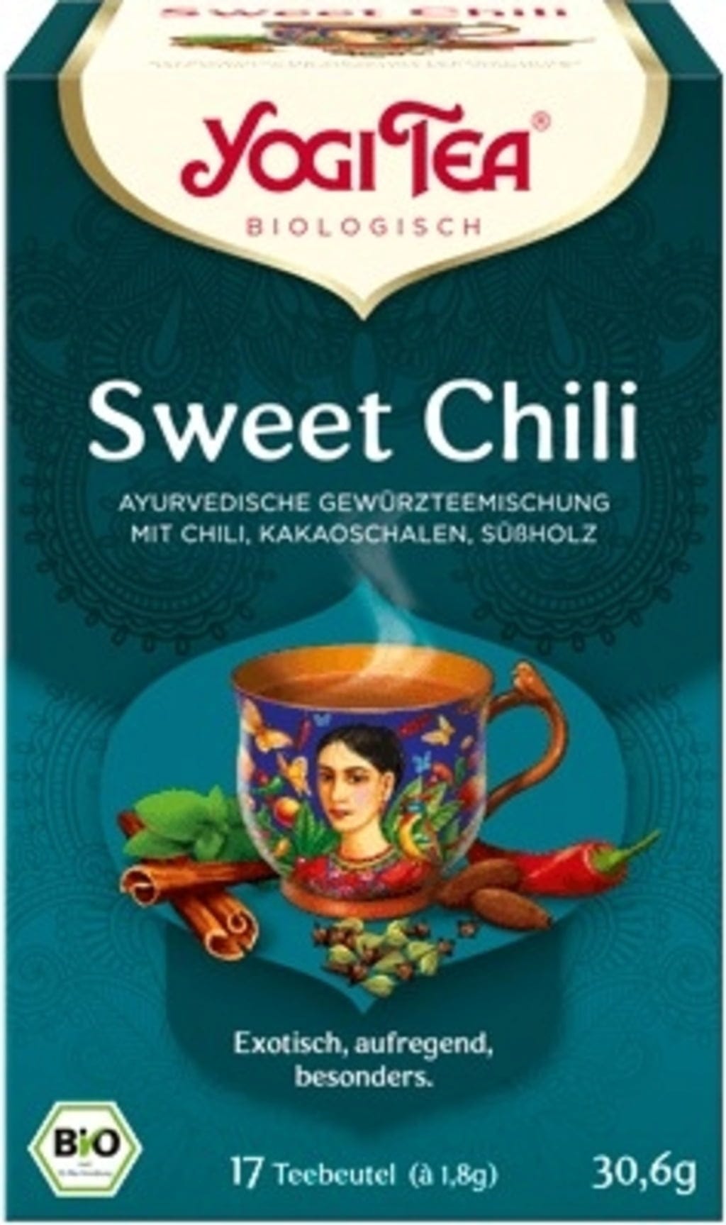 Yogi Tea Sweet Chili er en delikatesse med skatter fra både den gamle og nye verden. Krydder fra Orienten og krydret chili fra Mellom-Amerika kombineres for å fortrylle vår daglige livsstil. Sweet Chili smaker godt til enhver tid på dagen eller natten.