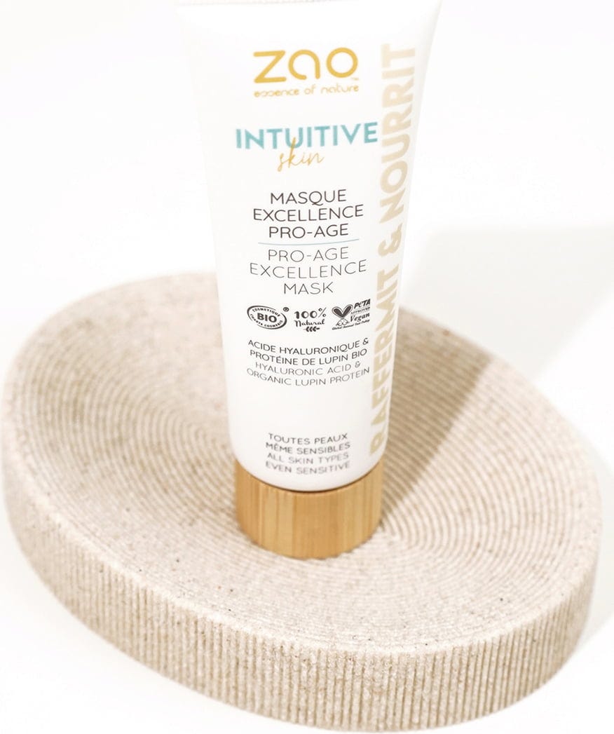 Pro-Age Excellence-masken ble utviklet for langvarig hudpleie. Den gir intensiv pleie for mer næring og fasthet. Den rike formelen med plantebasert hyaluronsyre og organisk lupinprotein sikrer glød og elastisitet. Takket være økologisk aloe vera og sheasmør gir den intensiv næring, mens hvit leire renser skånsomt.